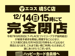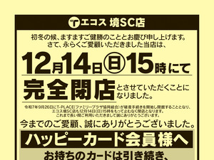 境SC店 12月14日15時にて完全閉店のお知らせ:表