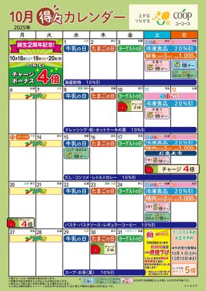 10月の得々カレンダー お買い物の計画にご活用ください