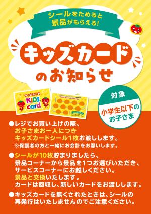 • キッズカード毎週火・日曜日はシールが2倍!