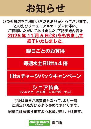 阪急オアシス 阪急オアシスデイリーマート/富田店のチラシ・特売情報・告知
