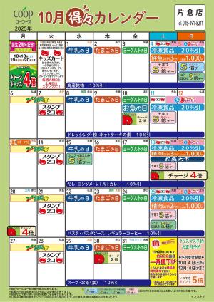 10月の得々カレンダー お買い物の計画にご活用ください