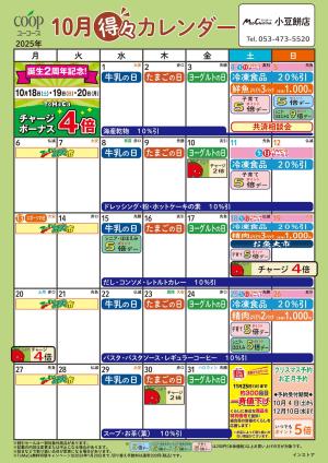 10月の得々カレンダー お買い物の計画にご活用ください
