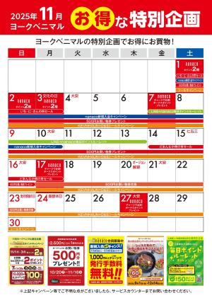 - 11月のお得な特別企画カレンダー