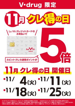 • Vドラッグ限定企画 クレ得の日!! 11月開催日のご案合