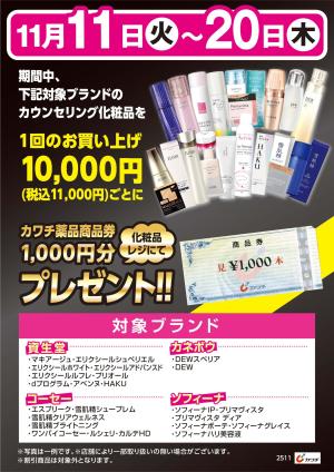 カウンセリング化粧品購入で商品券プレゼント!