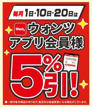 1・10・20日はアプリ会員様5%引!
