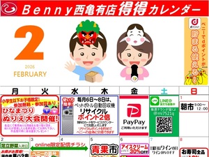 得々カレンダー西亀有店2月号