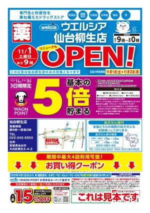 11/1(土)〜11/3(月) ウエルシア 仙台柳生店 リニューアルオープンセール!