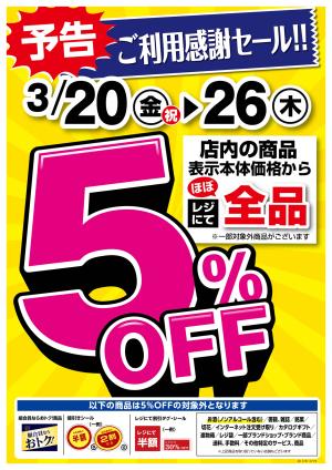 【予告】ご利用感謝セール!全品5%OFF