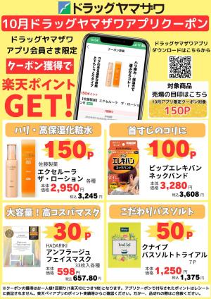ドラッグヤマザワ10月のアプリクーポン