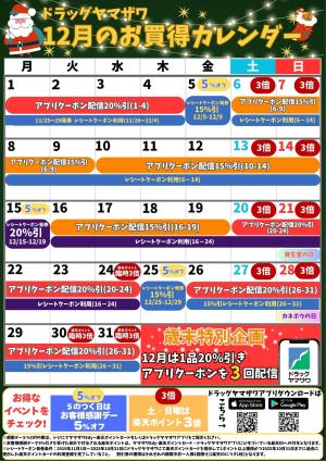 ドラッグヤマザワ12月のお買い得カレンダー