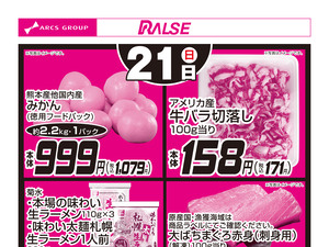 特売情報の価格や在庫などは、実売状況と異なる場合があります。当サイトと店頭での情報が異なる場合、店頭の情報が優先されます。特に注釈のない価格は税込です。また、一部の写真はイメージです。